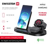 SWISSTEN BEZDRÁTOVÁ NABÍJEČKA 3v1 STATION PRO APPLE A SAMSUNG ČERNÁ