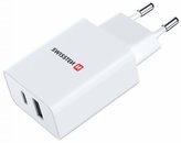 Swissten Síťový Adaptér GaN 1x USB-C + 1x USB 30W PD Bilý