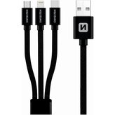 SWISSTEN Textile USB 3v1, Lightning MFi/microUSB/USB-C 1,2m černý