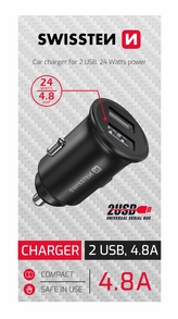 SWISSTEN CL ADAPTÉR 2x USB 4,8A METAL ČERNÝ (SAMOPRODAVAČ)