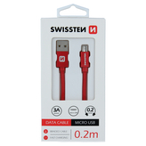 DATOVÝ KABEL SWISSTEN TEXTILE USB / MICRO USB 0,2 M ČERVENÝ