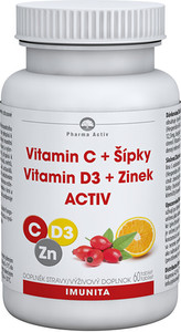 Pharma Activ Vitamin C + Šípky, Vitamin D3 + Zinek ACTIV 60 tablet