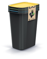 Odpadkový koš COMPACTA R FLAP recyklovaný černý s světle žlutým víkem, objem 25l