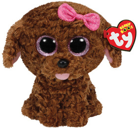 Plyš očka střední pejsek hnědý s mašličkou