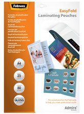 FELLOWES laminovací fólie/ formát A4/ 80 mic/ s rýhou uprostřed pro snadné složení/ lesklé/ 25 pack