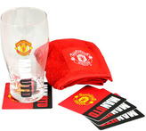 Bar set sklenice s tácky a ručníkem FC Manchester United: Wordmark (objem 470 ml)