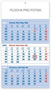 Kalendář 2015 - Standard modrý 3měsíční s českými jmény - nástěnný s prodlouženými zády