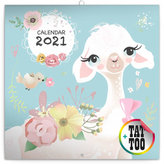 Kalendář 2021 poznámkový: Šťastné lamy, 30 × 30 cm