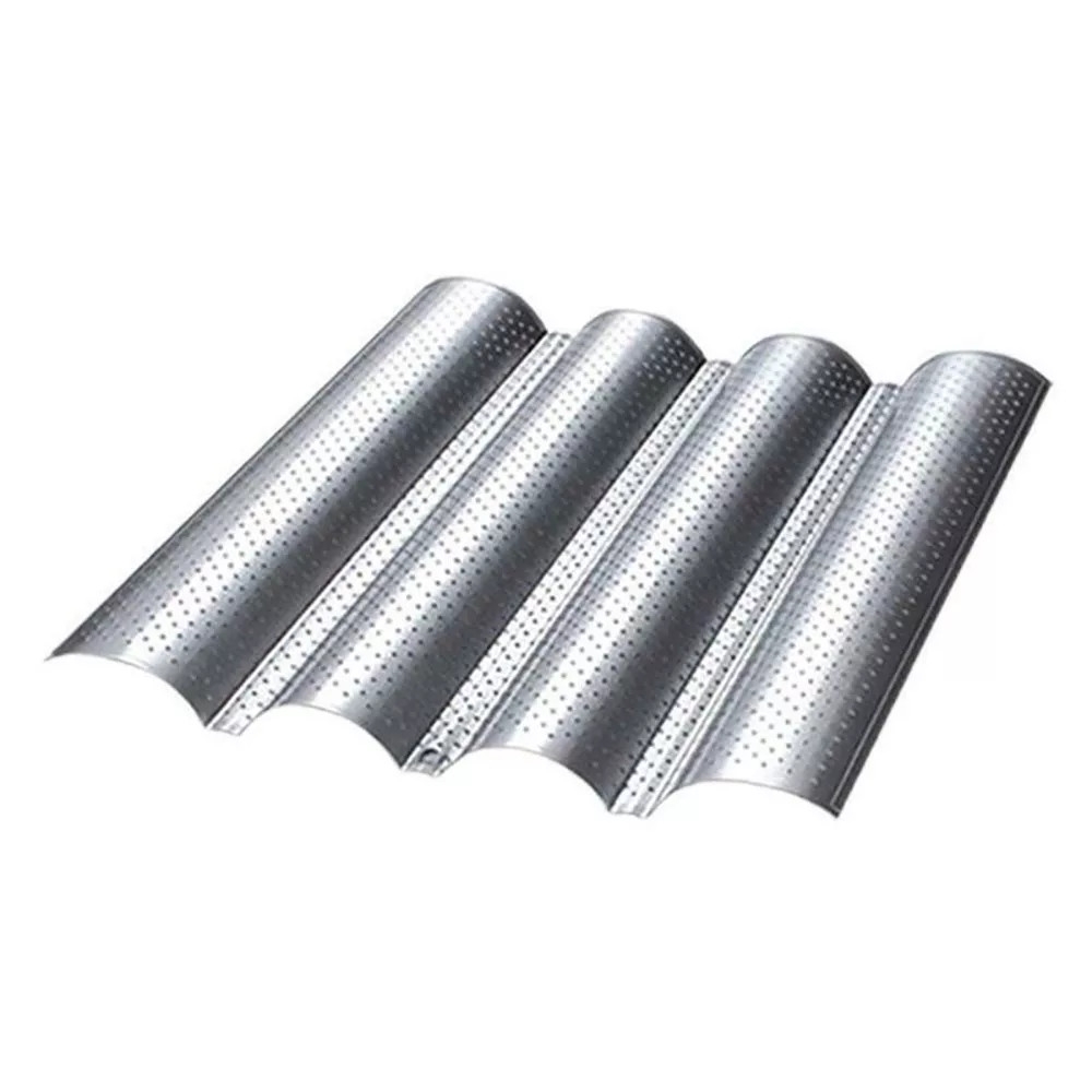 Forma / plech na bagety, rohlíky, bagetový chléb apod. Při pečení lépe udrží jejich tvar. Perforované provedení zaručení rovnoměrné propečení. Je vhodný i pro rozpékání již upečených baget a pečiva. Kovový materiál s nepřilnavým povrchem. Rozměr 37.5 x 31 x výška 2 cm. EAN 6920220000618 przeczytaj całość