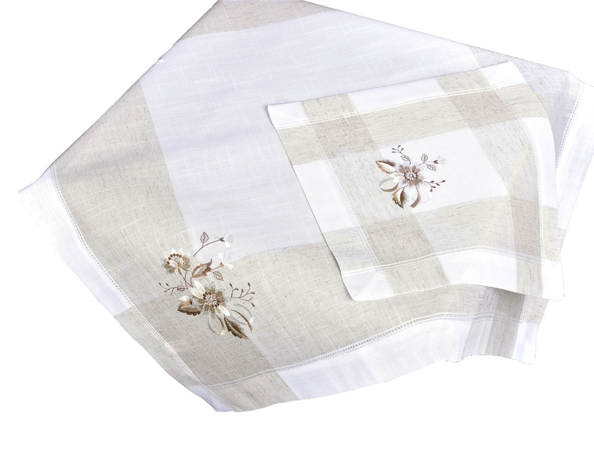 Ubrus celoroční, Gazanie se lnem, bílo béžový 40 x 90 cm