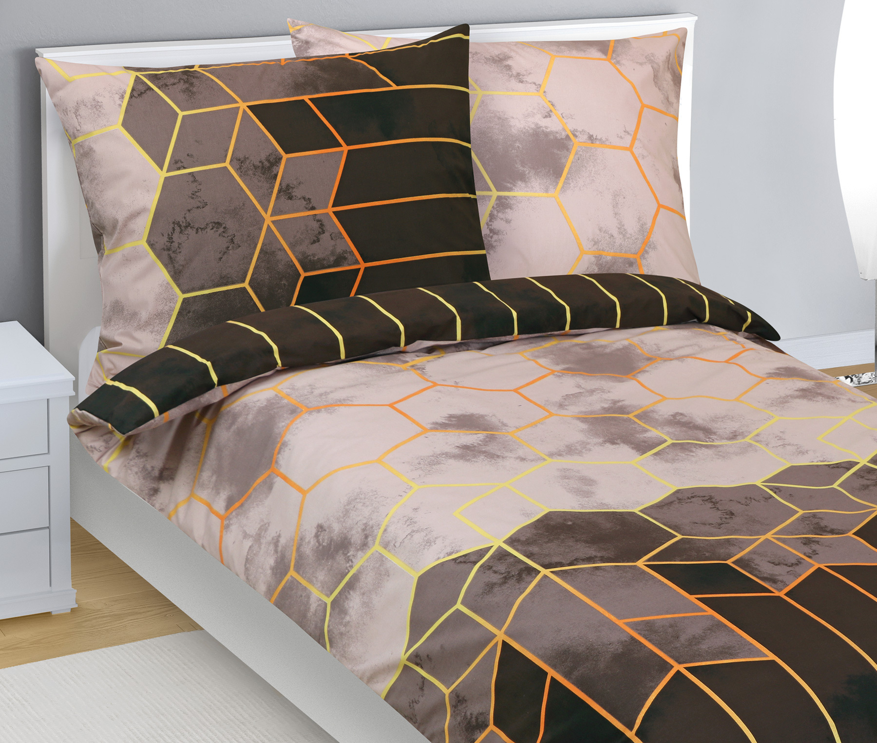 Povlečení bavlněné - Plástve hnědá, béžová - 140x200, 70x90 cm