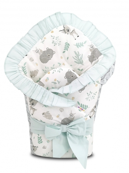Rozměr cca 80x80cm.(měřeno i s volánkem)Svrchní materiál 100% bavlna.Vnitřek z dutého vlákna - hypoalergenní.Zapínání - stuha a suchý zip.Zavinovačku lze později používat i jako podložku, dečku apod.Vše vyrobeno z kvalitní 100% bavlny.Certifikováno, atest, 1.jakost (zboží určené pro děti).Bavlna...