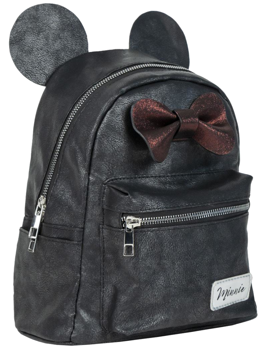 Oficiální produkt - mini dámský batoh z katalogu výrobků s grafikou a licencí populární myšky Minnie Mouse od společnosti Disney. Zboží je legálně licencováno a prodáváno se souhlasem vlastníků licenčních práv.Černý mini jednoprostorový batoh s přední menší kapsou a detaily myších uší v motivu...