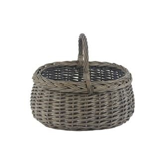 Proutěný košík oválný.Rozměry : 25 × 20 cm, výška 14 , celková výška s uchem 23 cm.Barva : šedá.Materiál : proutí. przeczytaj całość