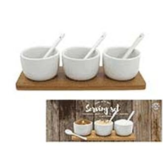 Servírovací set.Rozměry : 27 × 7 cm, výška 8 cm.Barva : bílá.Materiál : porcelán. przeczytaj całość