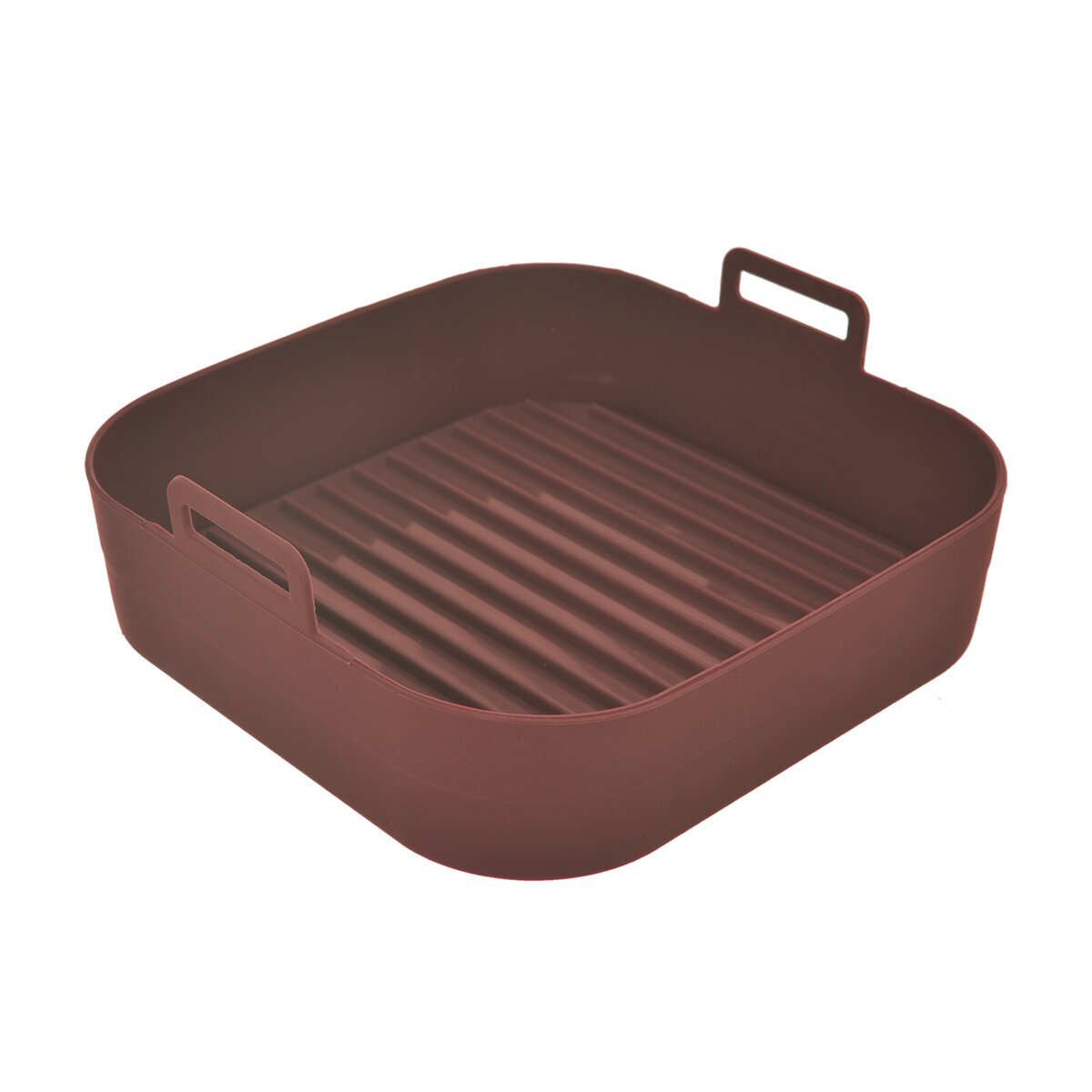 Kanciasta forma silikonowa o wymiarach 17,5 x 17,5 cm i wysokości 4,5 cm (z uchwytami 6,5 cm) przeznaczona jest nie tylko do frytkownicy na gorące powietrze, ale dzięki odporności w zakresie temperatur od -40 °C do +220 °C można jej używać także w tradycyjnym piekarniku lub mikrofali. Idealna do przygotowywania warzyw, makaronów lub dietetycznych dań. Po użyciu łatwo umyjesz ją w zmywarce, co znacząco ułatwia utrzymanie porządku w kuchni.