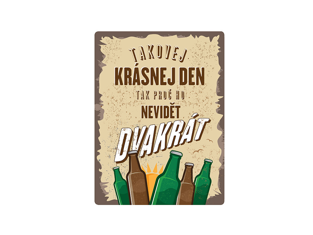 Retro plechová cedulka s textem "Takovej krásnej den, tak proč ho nevidět dvakrát.".Rozměr: 30 x 40 x 0,3 cmMateriál: smaltovaný plech przeczytaj całość