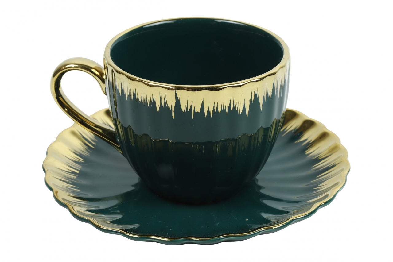 Hrnek s podšálkem Charlotte 13 cm zelený/zlatý