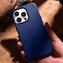 iCarer Case Leather pokrowiec etui z naturalnej skóry do iPhone 14 Pro niebieski (WMI14220706-BU) (kompatybilne z MagSafe)