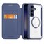 Etui Dux Ducis Skin X Pro: kompatybilność z MagSafe, magnetyczne zamknięcie klapki, trwała skóra ekologiczna, praktyczne kieszonki na karty. Kompatybilność: Samsung Galaxy S24+. Kolor: niebieski. przeczytaj całość