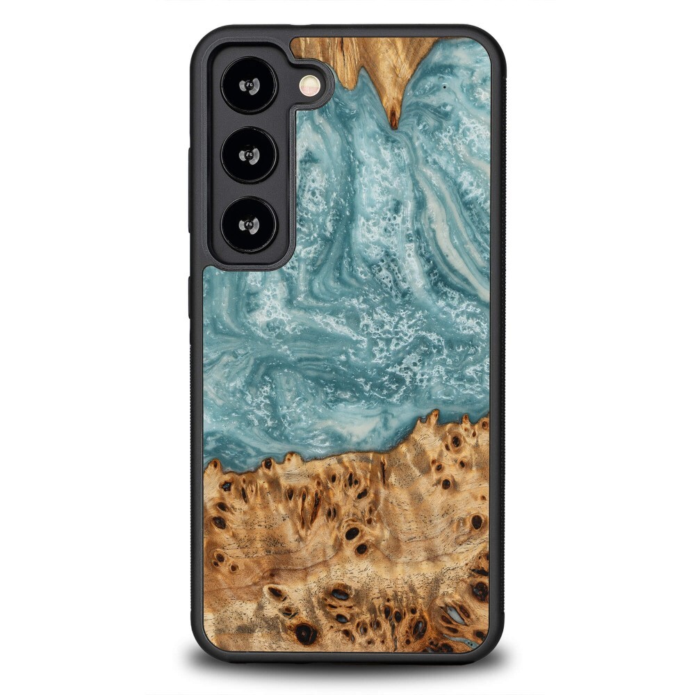 Etui Bewood Unique Uran z drewna i żywicy na Samsung Galaxy S23 - niebiesko-białe