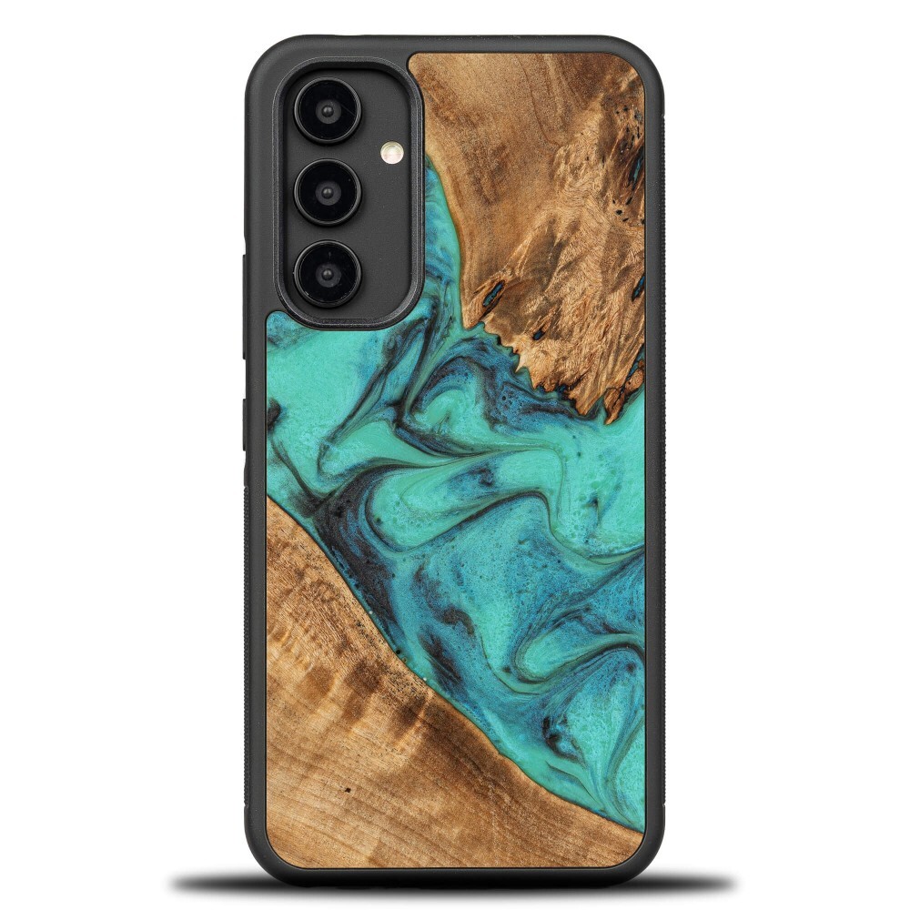 Etui Bewood Unique Turquoise z drewna i żywicy na Samsung Galaxy A54 5G - turkusowo-czarne