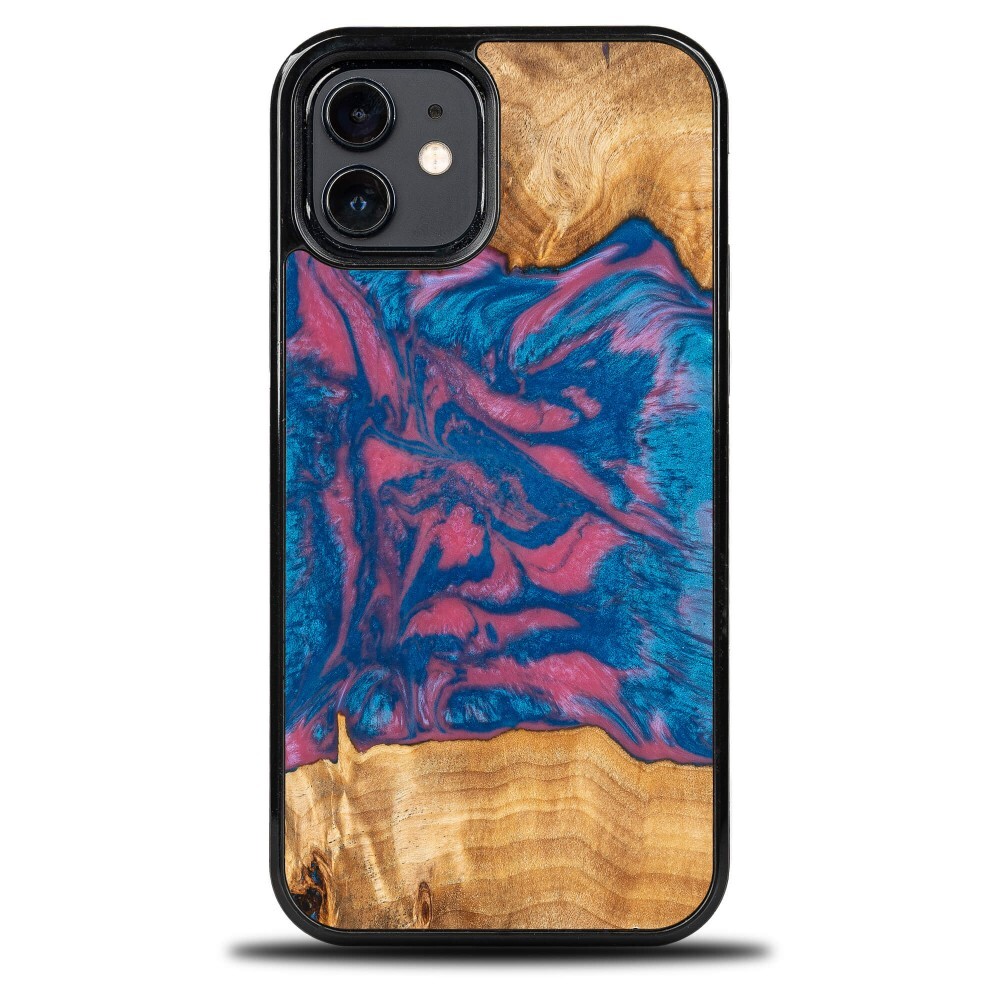 Etui Bewood Unique Vegas z drewna i żywicy na iPhone 12 / 12 Pro - różowo-niebieskie