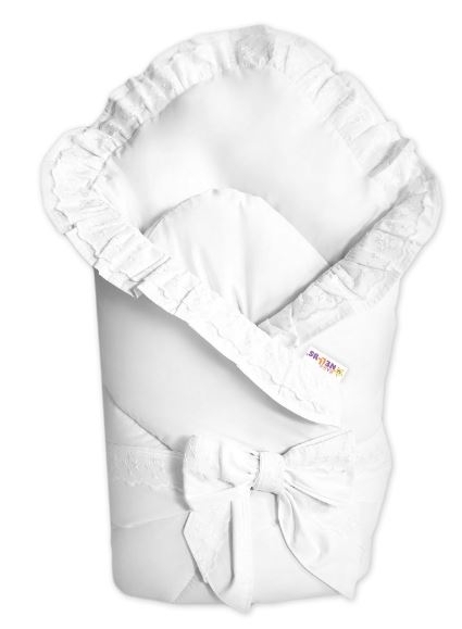 Baby Nellys Rychlozavinovačka s dvěma volánky a stuhou, bílá s výšivkou
