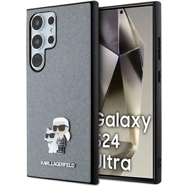 Etui Karl Lagerfeld Saffiano Karl&Choupette Metal Pin na Samsung Galaxy S24 Ultra - szare