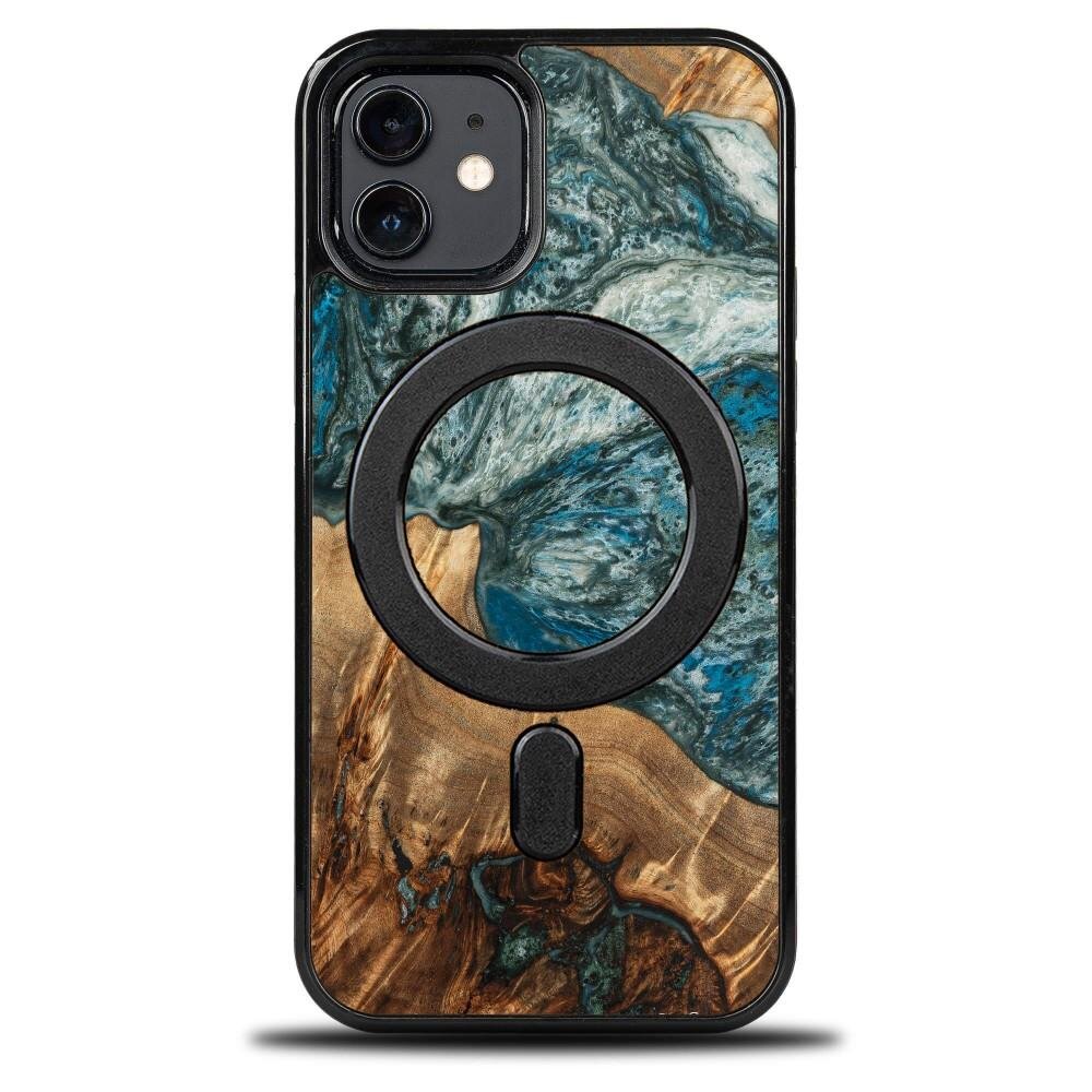 Etui Bewood Unique MagSafe Planeta Ziemia z drewna i żywicy na iPhone 12 / 12 Pro - niebiesko-zielone