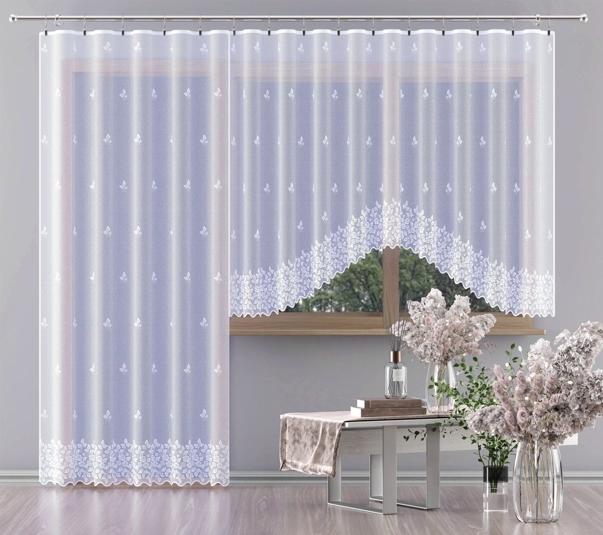 Tato krásná záclonka zaujme svým neotřelým vzhledem. Zdobená jemnými lístky na kvalitní záclonovině, vykrojená do klasického oblouku, udělá dojem na všechny přihlížejícíOkraje záclony mají pevné lemy, není třeba je obšívat. Zesílený horní lem je určený pro snadné zavěšení na klasické...