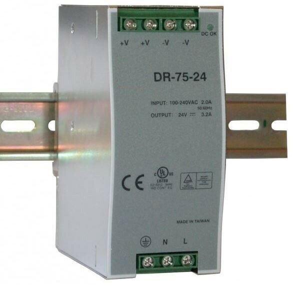 Průmyslový zdroj Carspa DR-75-24, 24V=/75W, spínaný na DIN lištuVstup: 100–240V/2,2AMax. startovací proud: 60A/230VProud naprázdno: «1mA/240VOchrana tepelná, proti přetížení a přepětí.Výstup 24V±10% (lze regulovat trimrem) 75W /3,2A při 24V±10%Rozměry (ŠxVxH): 65×125×110mm przeczytaj całość
