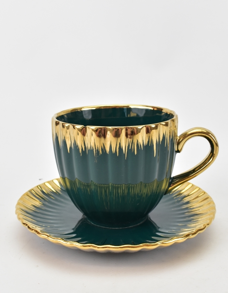 Hrnek s podšálkem Charlotte 13 cm zelený/zlatý