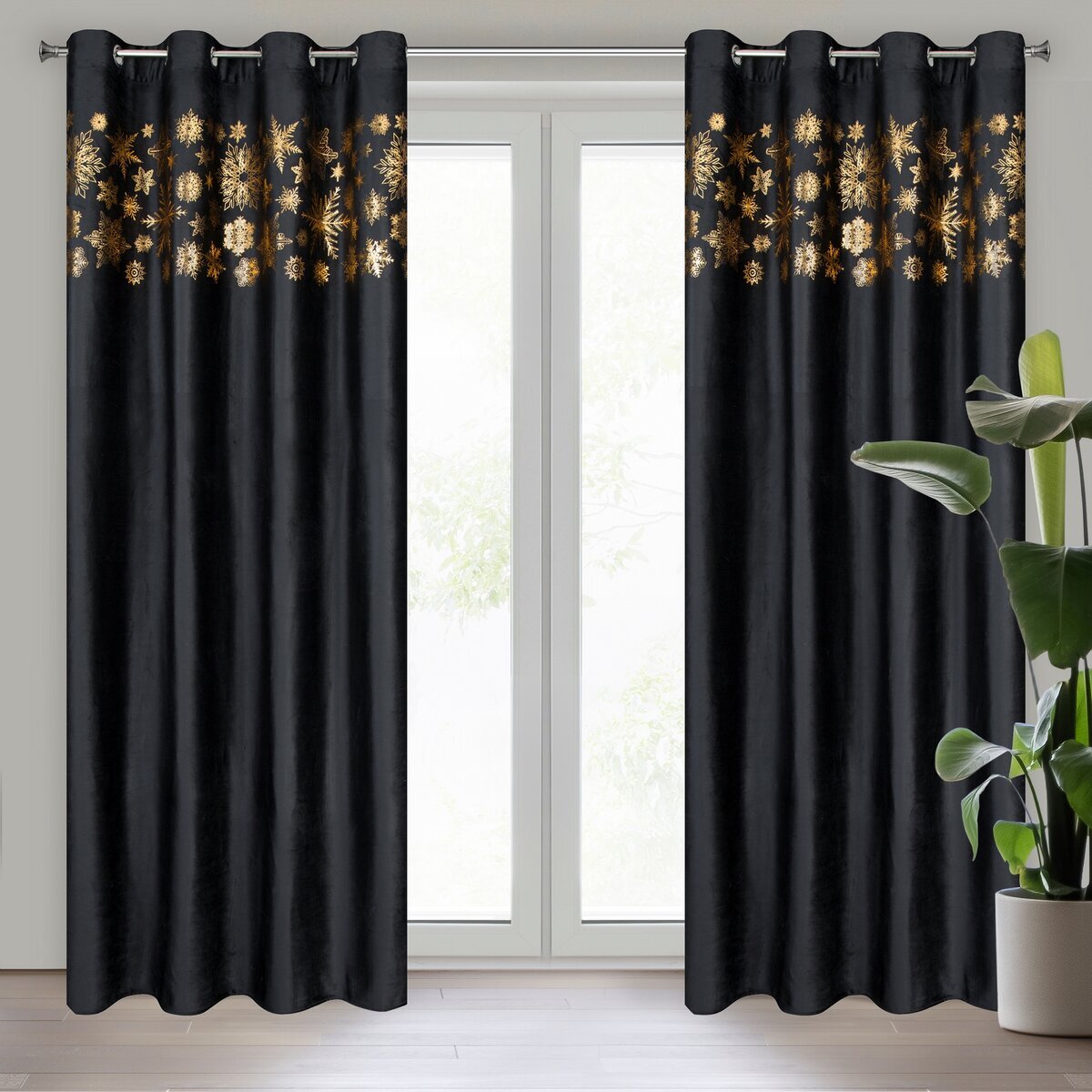 Vánoční dekorační závěs s kroužky ASTORIA černá 140x250 cm (cena za 1 kus) MyBestHome