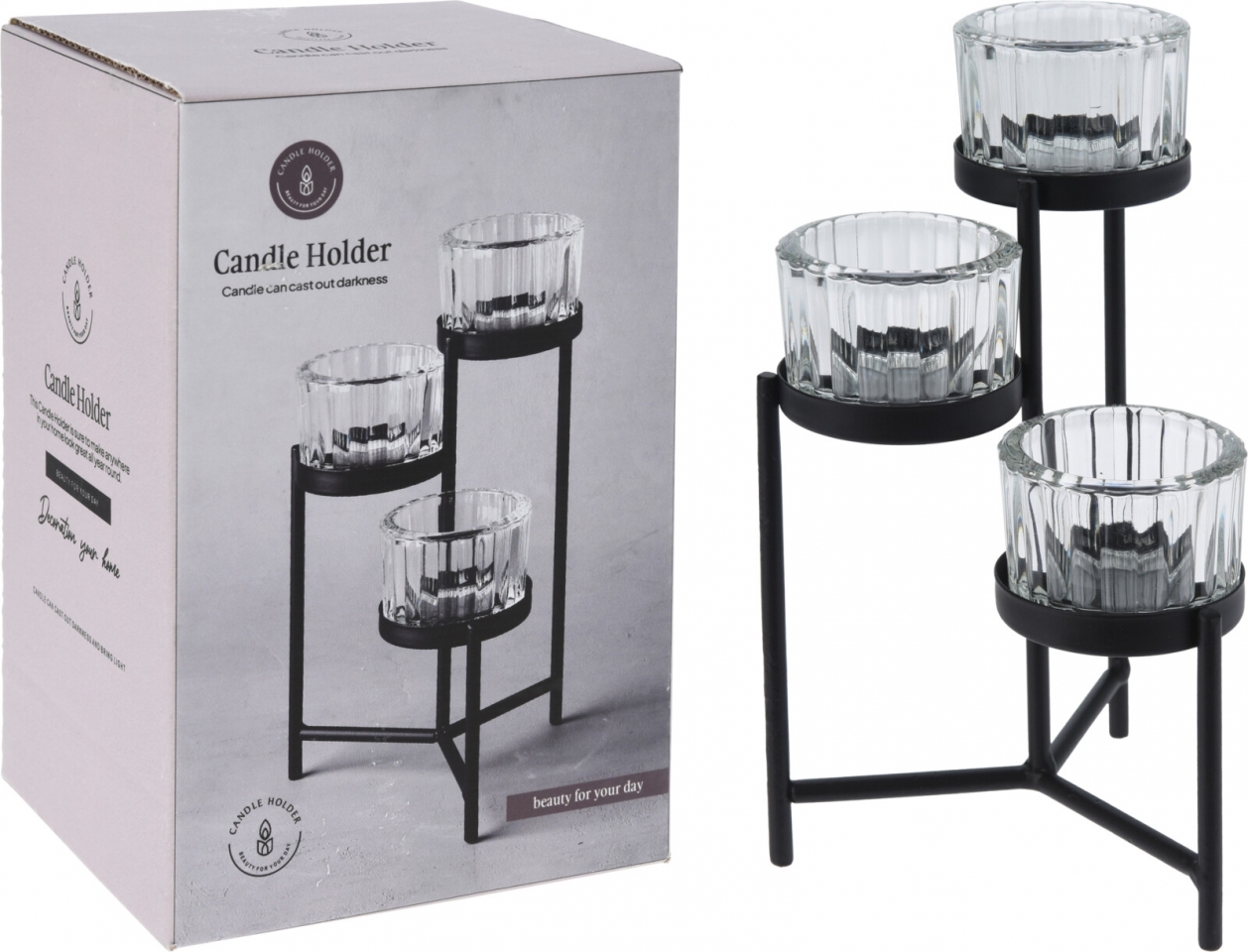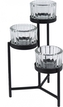 Kovový svícen se skleněnými kalíšky na tři čajové svíčky.Materiál: kov, skloMateriál: kov, skloRozměry:výška 18 cmprůměr 11 cm przeczytaj całość