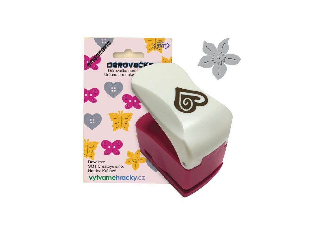 Děrovačka pro výtvarnou tvorbu. Velikost výseku 25 mm. Postup: 1. pracujte s děrovačkou na pevné a rovné ploše. 2. vložte papír vhodné tloušťky - 180-220 g/m2 a zatlačte na páku statickým tlakem. Nikdy ne úderem na páku. 3. po proděravění opatrně vytáhněte zbylý papír. 4. POUŽÍVEJTE POUZE NA...