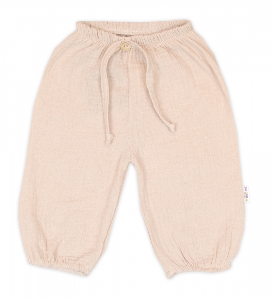 Mušelínové kalhoty Boy, Nature, béžové, vel. 62; 62 (2-3m)