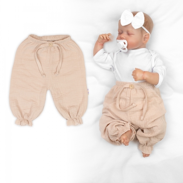 Mušelínové kalhoty Girl, Nature, béžové, vel. 62; 62 (2-3m)