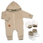 Bavlněný oteplený overálek s kapucí, rukavičky, botky, 3D sada Nature - taupe, vel. 62; 62 (2-3m)
