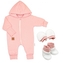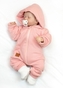 Bavlněný oteplený overálek s kapucí, rukavičky, botky, 3D sada Nature - korálová, vel. 74; 74 (6-9m)