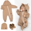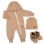 Rostoucí teplákový overal pro miminko, čepice, botky, 3D, Nature - karamelová, vel. 68/74; 68/74 (6-9m)