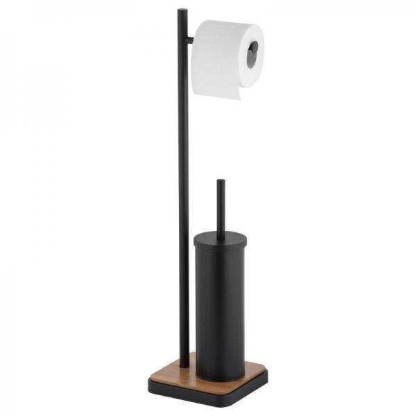 Stojan WC:v černé barvě v matném provedení s prvky bambusu, bílá barva štětin na WC štětce,2v1 štětka i držák na roli toaletního papíru,nádoba pro zachycení kapající vody uvnitř nádoby na kartáč,vyrobeno z oceli a bambusu,rozměr: celková výška stojanu : 72 cm, rozměr základny : 18 x 18 cm,...