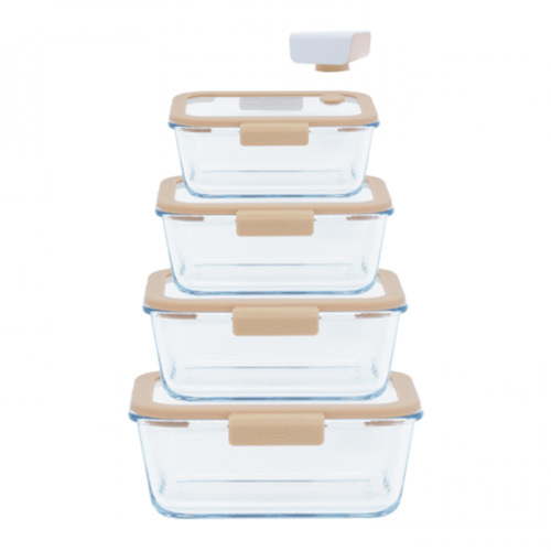 Vlastnosti:- 4 skleněné dózy o objemu 460 ml, 800 ml, 1,2 l a 1,9 l- materiál: borosilikátové tvrzené sklo, silikon, plast- barva: písková a sklo- rozměr balení: 41 x 27,5 x 11 cm - vakuovací ruční pumpička se dobíjí kabelem USB-C- víčka dóz jsou opatřena úchyty, které po zacvaknutí zaručují...