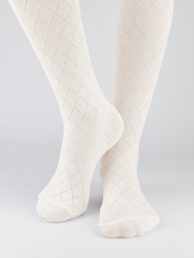 NOVITI RB010-G-02 Rajstopy bawełna żakard wzór romby ecru 116/122