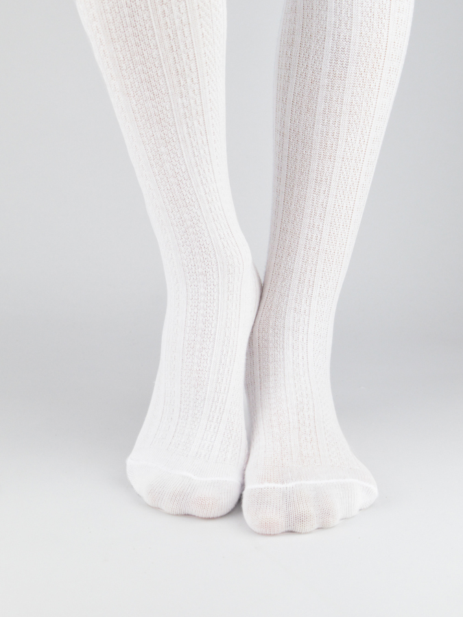 NOVITI RB009-G-01 Rajstopy bawełna żakard wzór prążki białe 92/98