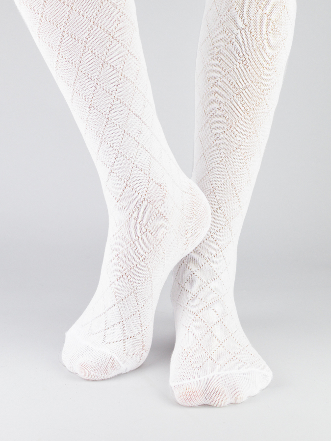 NOVITI RB010-G-01 Rajstopy bawełna żakard wzór romby białe 104/110