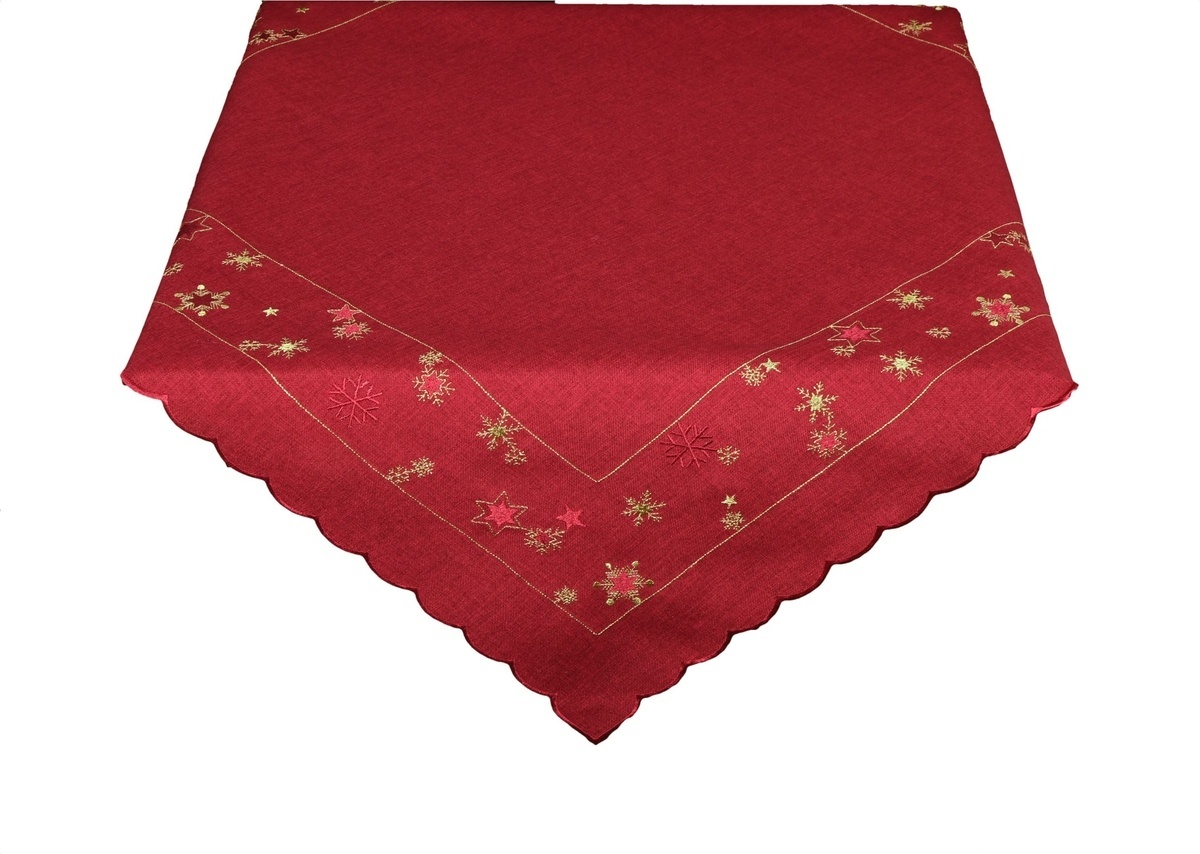 Ubrus Vánoční, Zlaté vločky a červené hvězdičky, červený 120 x 140cm