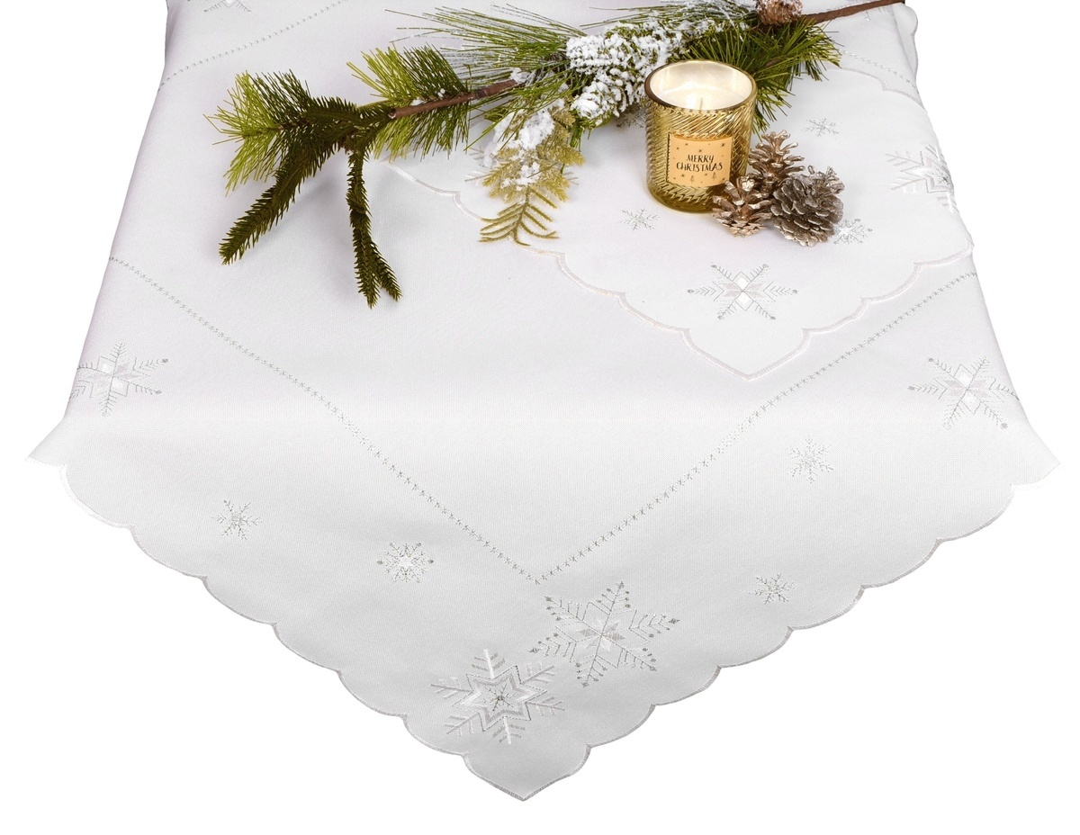 Exkluzivní dekorační vyšívaný ubrus přinese do vašeho domova kouzlo svátků a vytvoří tu pravou slavnostní atmosféru. Ubrusy jsou vyrobeny z kvalitní bílé tkaniny, která dodává elegantní vzhled. Jemný stříbrnobílý motiv vloček přidává nádech luxusu, zatímco bílý lem podtrhuje jeho sofistikovaný...