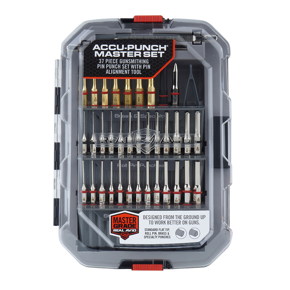 Rusznikarski zestaw wybijaków umożliwiający demontaż broni oraz jej podzespołów. Zestaw posiada 37 narzędzi wyposażonych w polimerowy organizer, który dodatkowo posiada dwie namagnesowane przegrody, ułatwiające prowadzenie prac serwisowych.