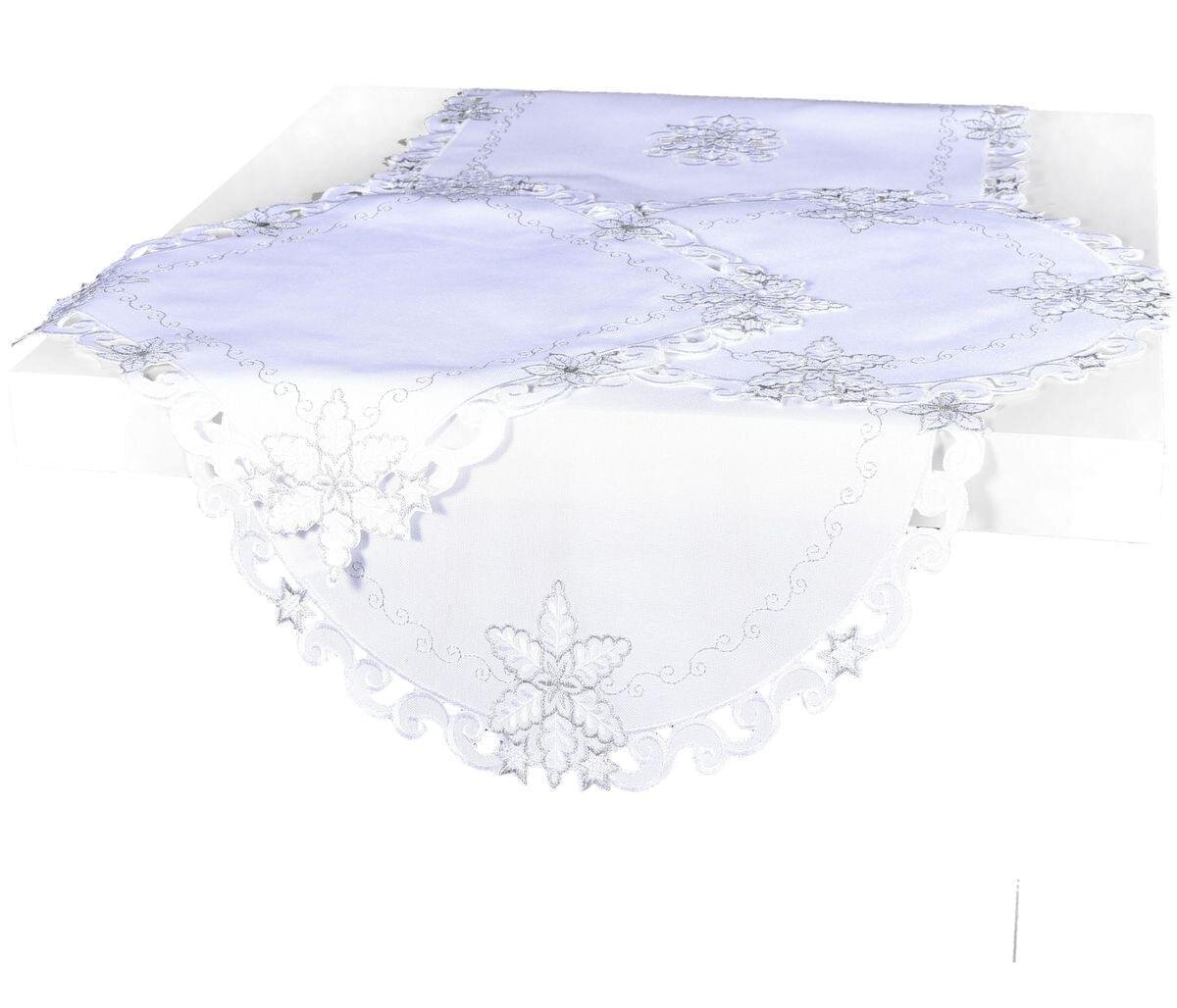 Ubrus vánoční, Vánoční hvězda stříbrná 18, bílá 30 x 45 cm